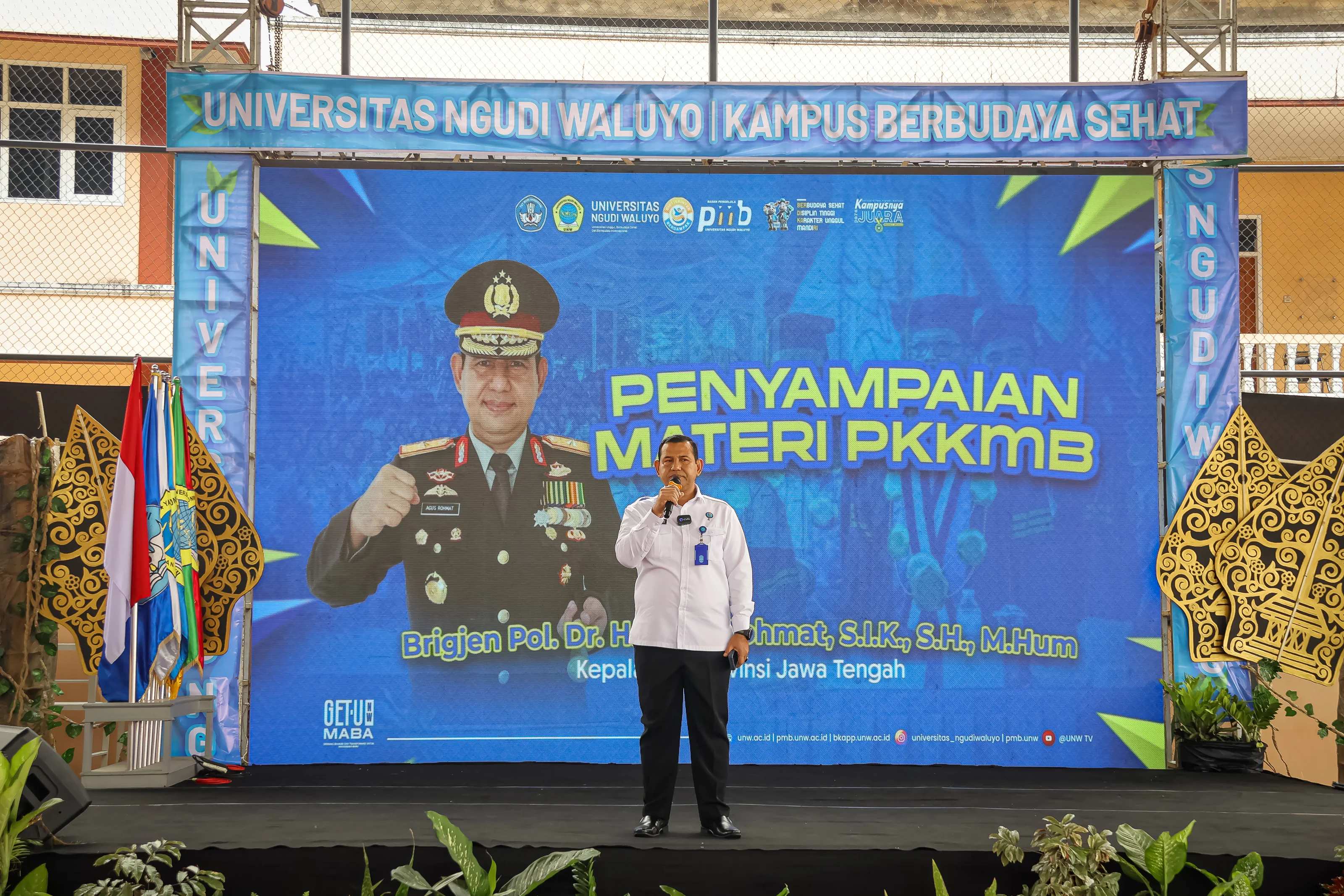 Ungaran, 25 Agustus 2025 - Mahasiswa baru Universitas Ngudi Waluyo (UNW) Tahun Akademik 2025-2026 mengikuti rangkaian acara Pengenalan Kehidupan Kampus bagi Mahasiswa Baru (PKKMB) yang berlangsung pada Senin- Rabu tanggal 25-27 Agustus 2025. Mengusung tema “Gerbang Edukasi dan Transformasi UNW (GET-U Maba 2025)”, acara tersebut dihadiri oleh Brigjen Pol. H. Agus Rohmat, S.I.K., S.H., M. Hum., Dimas herdy utomo, M.I.Kom., Yus Ibmu Yasin, serta Prof. Dr. Subyantoro, M.Hum., selaku Rektor UNW dan jajarannya sebagai pemateri. Tak hanya itu, segenap pimpinan Yayasan Ngudi Waluyo juga turur hadir, serta para Dekan dan Kaprodi dari seluruh program studi di UNW.